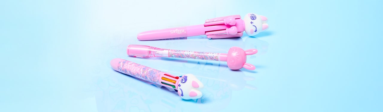 With Smiggle's colourful pens range, you’ll find pens with loads of character, such as pens with silicon animals or fluffy balls on top. They won’t be able to resist the cutest pens ever–we have pens with glitter, rainbow pens with eight ink colours, pen packs and more!